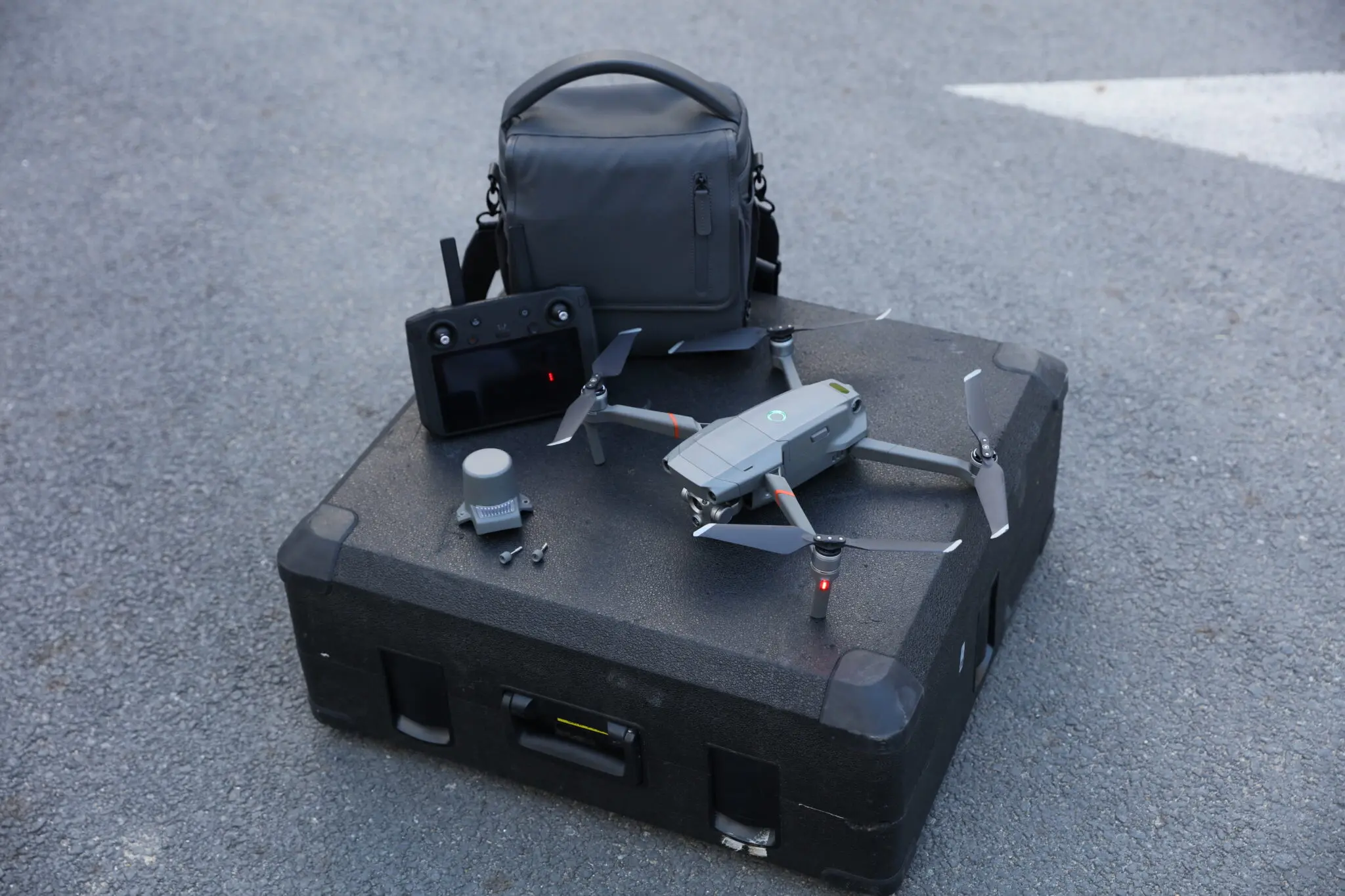 Žemiau pateikiama „Mavic 2 EA” dronu daryta po konstrukcijomis esančių keitiklių nuotrauka.