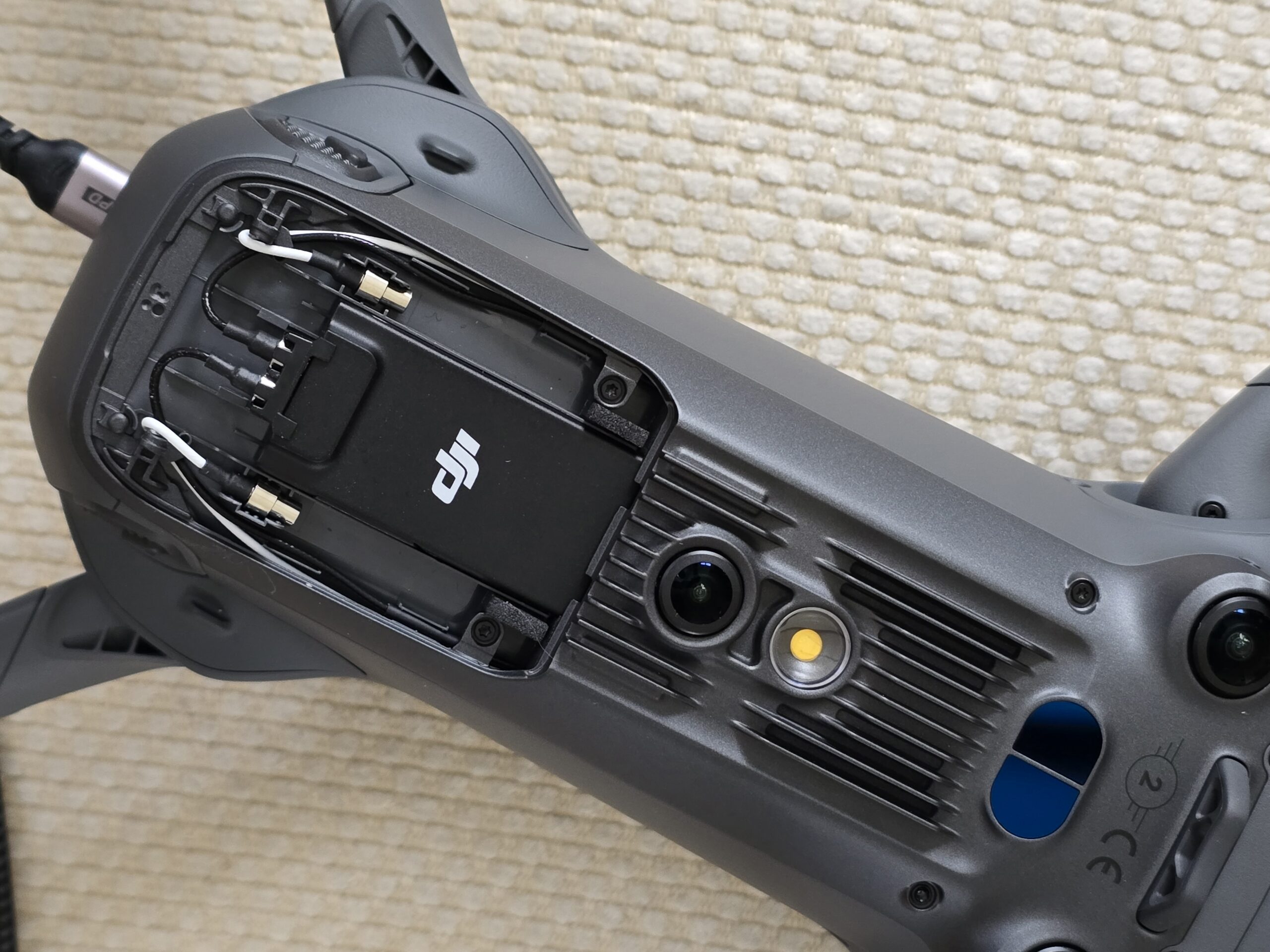 Šis modelis taip pat palaiko 4G įtaisą („Dji Cellular Dongle 2”) ir jis puikiai veikia. Nors ir turime reikiamą akių kontaktą su dronu, vis tiek pasitaiko atvejų, kai signalas nutrūksta. Jis nenutrūksta, kai yra šiek tiek mobiliojo ryšio aprėpties. 4G ryšio raktas į komplektą neįeina, jį reikia įsigyti atskirai, jis dedamas po drono pilvu, iš ten reikia atsukti vieną iš dangtelių. Paprasta.