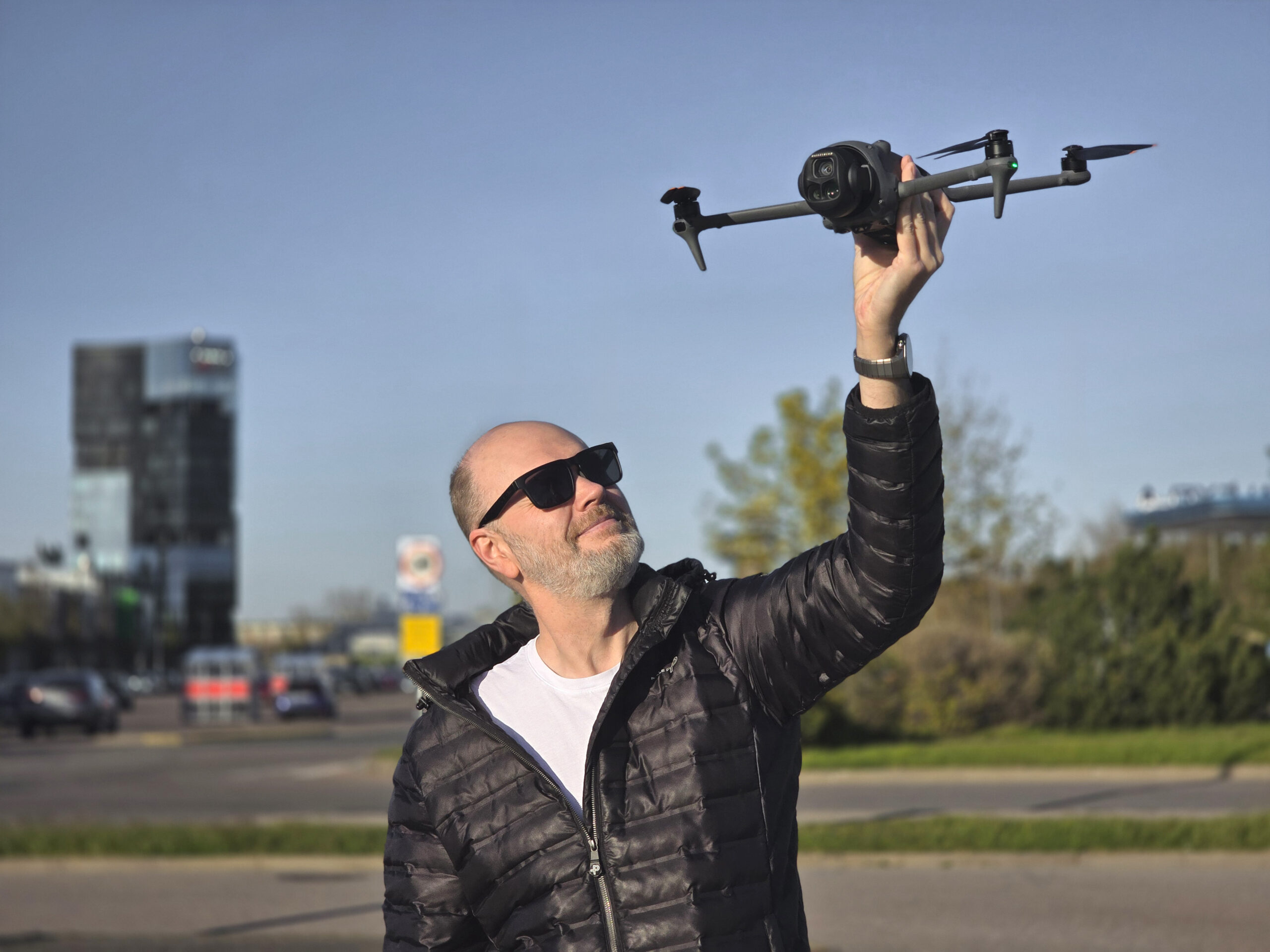 „Mavic 4 Pro” yra šiek tiek sunkesnė ir stambesnės formos. Jis stovi ant 3 atramų, kurios yra stebėtinai stabilios. Aparatas labai stabilus, ypač gimbalas, skrenda puikiai, nepastebėjau nė menkiausios anomalijos.