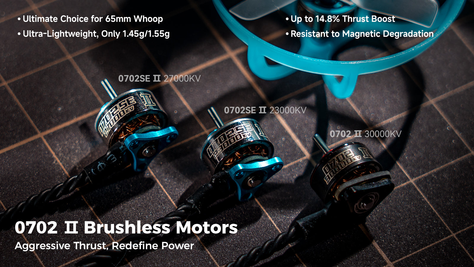 Puikiai pritaikytas 65 mm whoop dronams, 0702 II užtikrina, kad dominuosite ore su išskirtiniu greičiu, tikslumu ir valdymu.