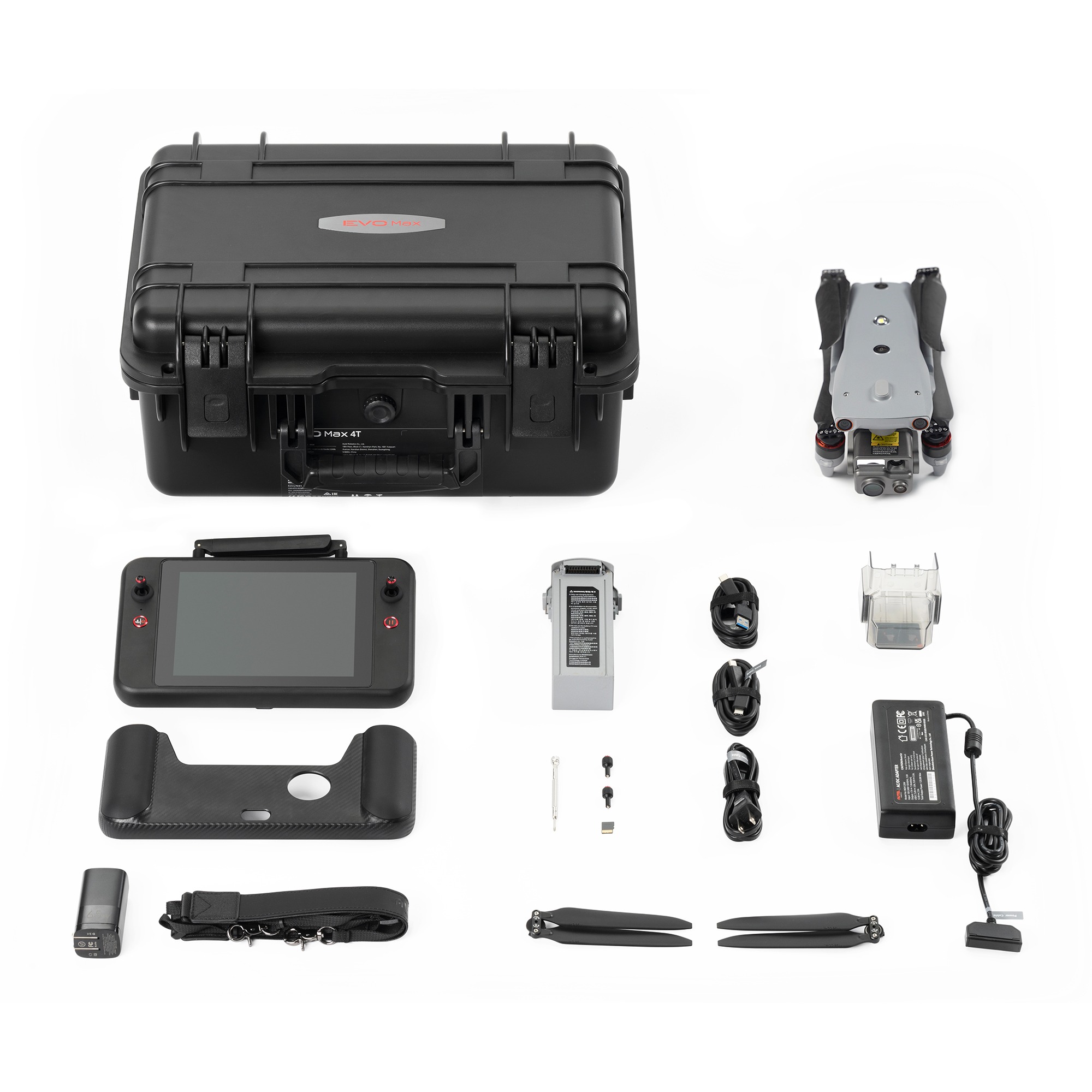 The EVO Max 4T brings powerful technologies and advanced autonomy to users. EVO Max 4T assesses complex environments to create real-time 3D flight paths for unparalleled obstacle avoidance.Advanced sensors make flight in GPS unavailable areas possible and the incredible new thermal payload unlocks new object identification and tracking scenarios.With a foldable, weather-resistant design, the EVO Max 4T is as portable as it is capable.