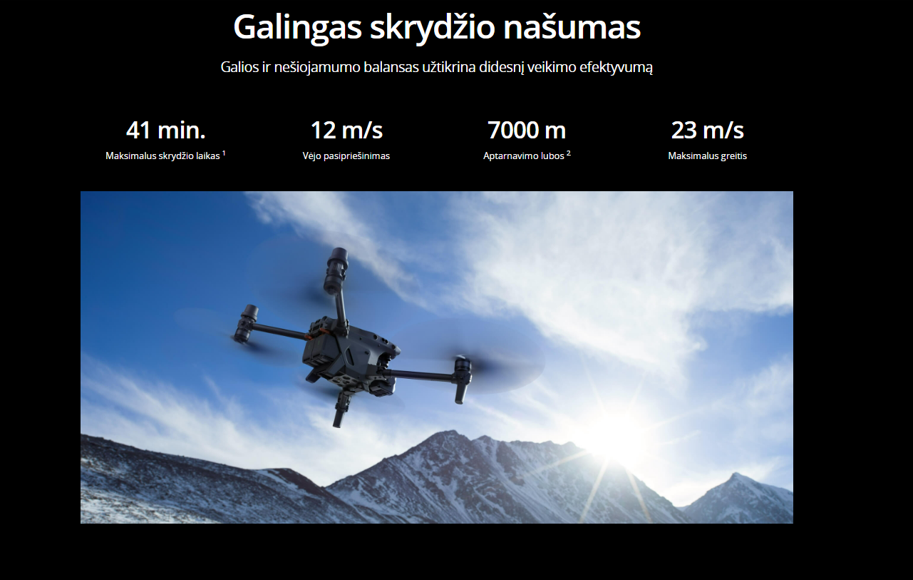 - Maksimali skrydžio trukmė – 41 minutė