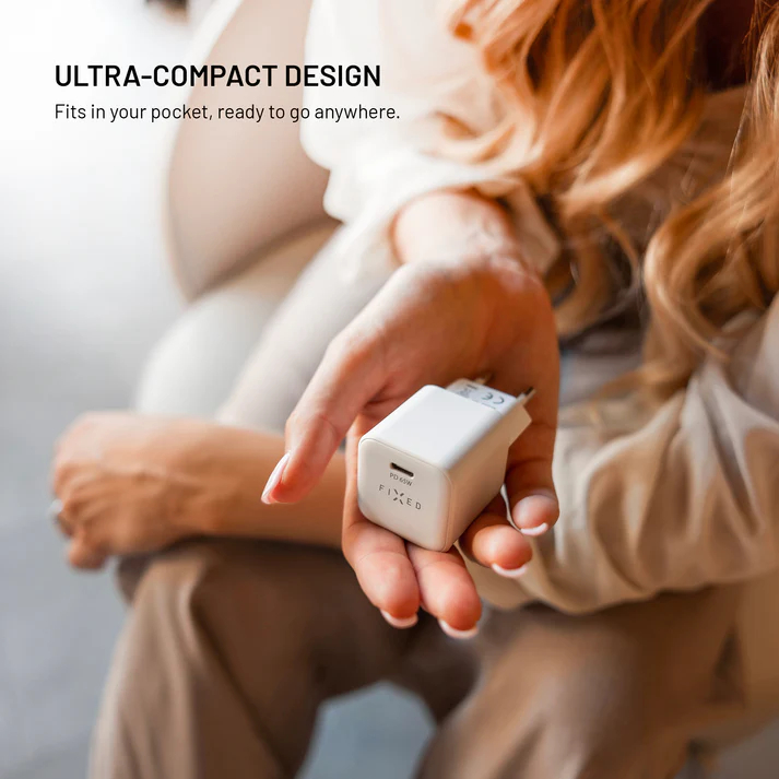 FIXED Mini USB-C GaN Charger 65W white yra kompaktiškas, galingas ir patikimas 65 W USB‑C įkroviklis, sukurtas greitam įkrovimui įvairiems įrenginiams nuo telefonų iki nešiojamų kompiuterių. Jis naudoja pažangią GaN (galia nitridas) technologiją, kuri leidžia sumažinti įkroviklio dydį ir išlaikyti aukštą efektyvumą bei mažą šilumos gamybą, todėl jis yra mažesnis ir lengvesnis nei tradiciniai 65 W adapteriai be kompromisų dėl galios ar saugumo.