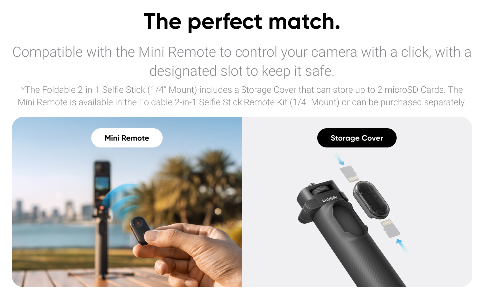 „Insta360” sulankstomas „2-in-1″ asmenukių lazdos nuotolinio valdymo rinkinys (1/4” laikiklis)