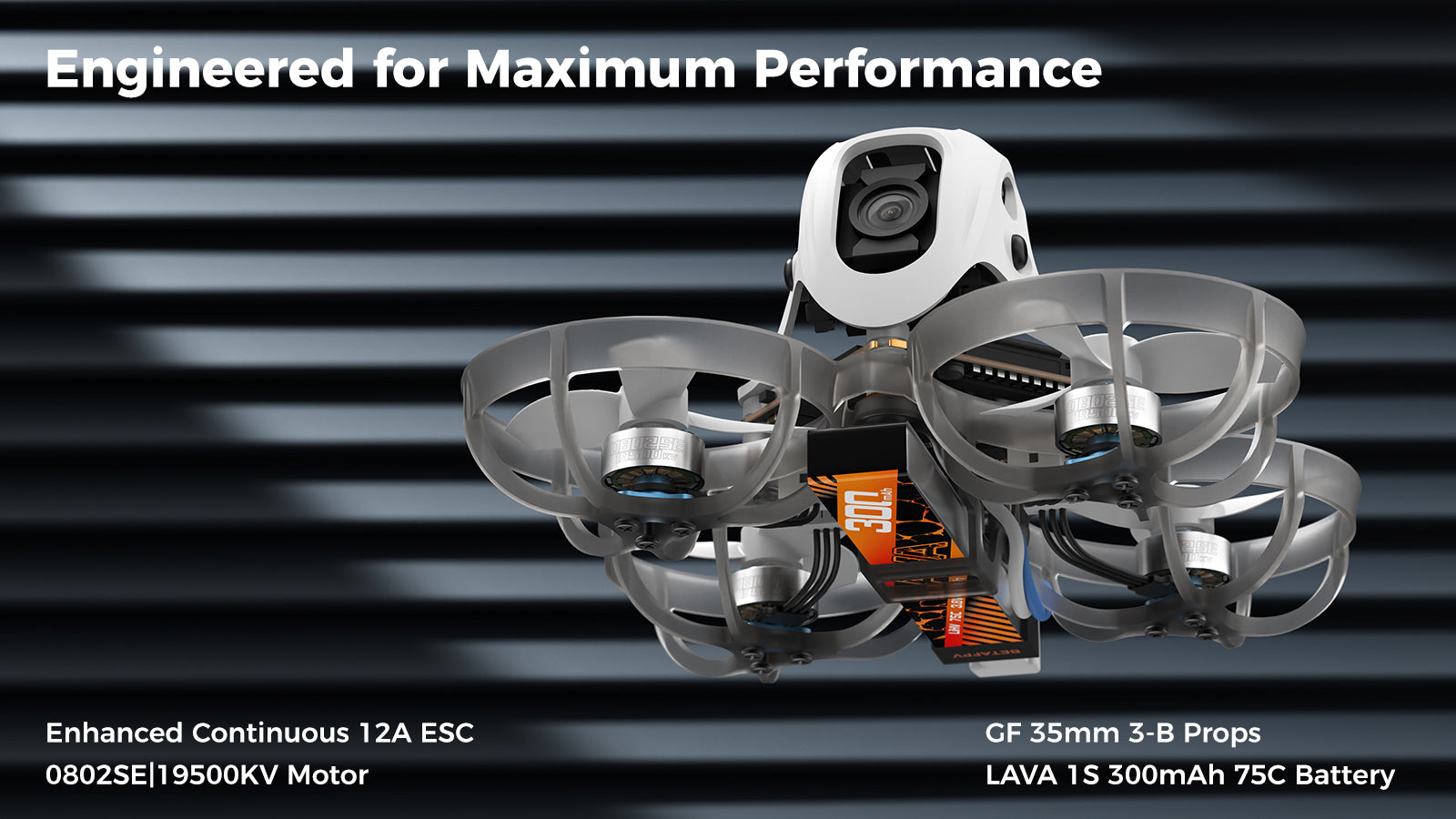 „BetaFPV Meteor65” rėmas yra lengvas, bet patvarus ir specialiai sukurtas stabiliam skrydžiui bei efektyviam oro srautui užtikrinti. Dėl uždarų propelerių apsaugų droną saugu skraidyti ankštose erdvėse, kartu išlaikant gerą manevringumą ir tikslią valdomumą. Dėl savo dydžio ir subalansuoto svorio „BetaFPV Meteor65” idealiai tinka mokomiesiems skrydžiams, taip pat sklandiems FPV vaizdo įrašams fiksuoti.