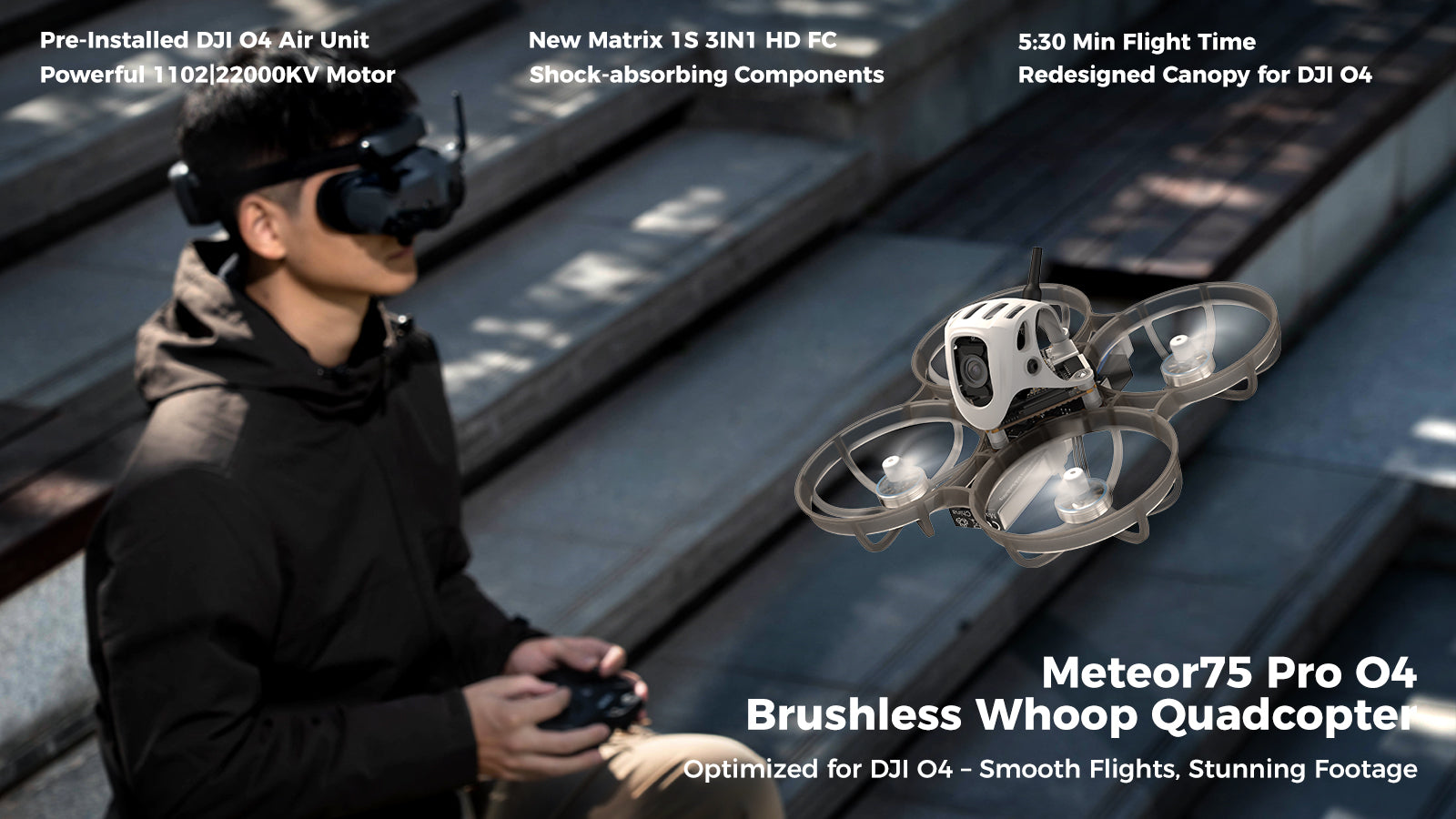 Perdarytas drono gaubtas užtikrina didesnį patvarumą, reguliuojamus kameros kampus ir išskirtinį vaizdo apšvietimą, todėl „Meteor75 Pro O4” yra idealus pasirinkimas FPV filmų kūrėjams ir entuziastams.