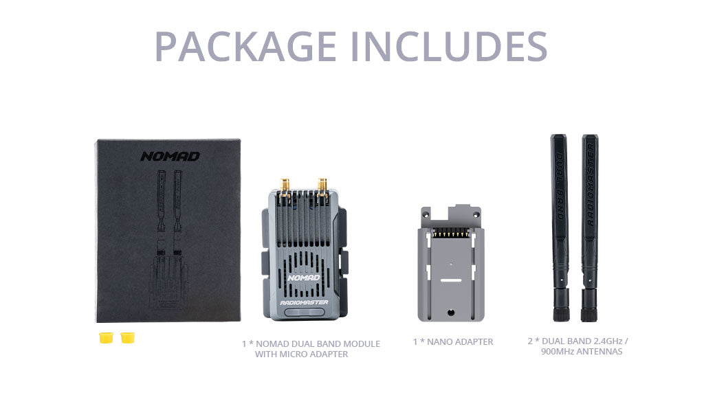 „Radiomaster Nomad” turi du trečiosios kartos „Semtech” LR1121 siųstuvus, kurie leidžia veikti ir 2,4 GHz, ir 868/900 MHz dažniais naudojant pažangų „Gemini Xrossband” protokolą. Ši technologija leidžia siųstuvui siųsti paketus vienu metu abiem dažnių juostomis, todėl sumažėja paketų praradimo dėl trukdžių rizika.