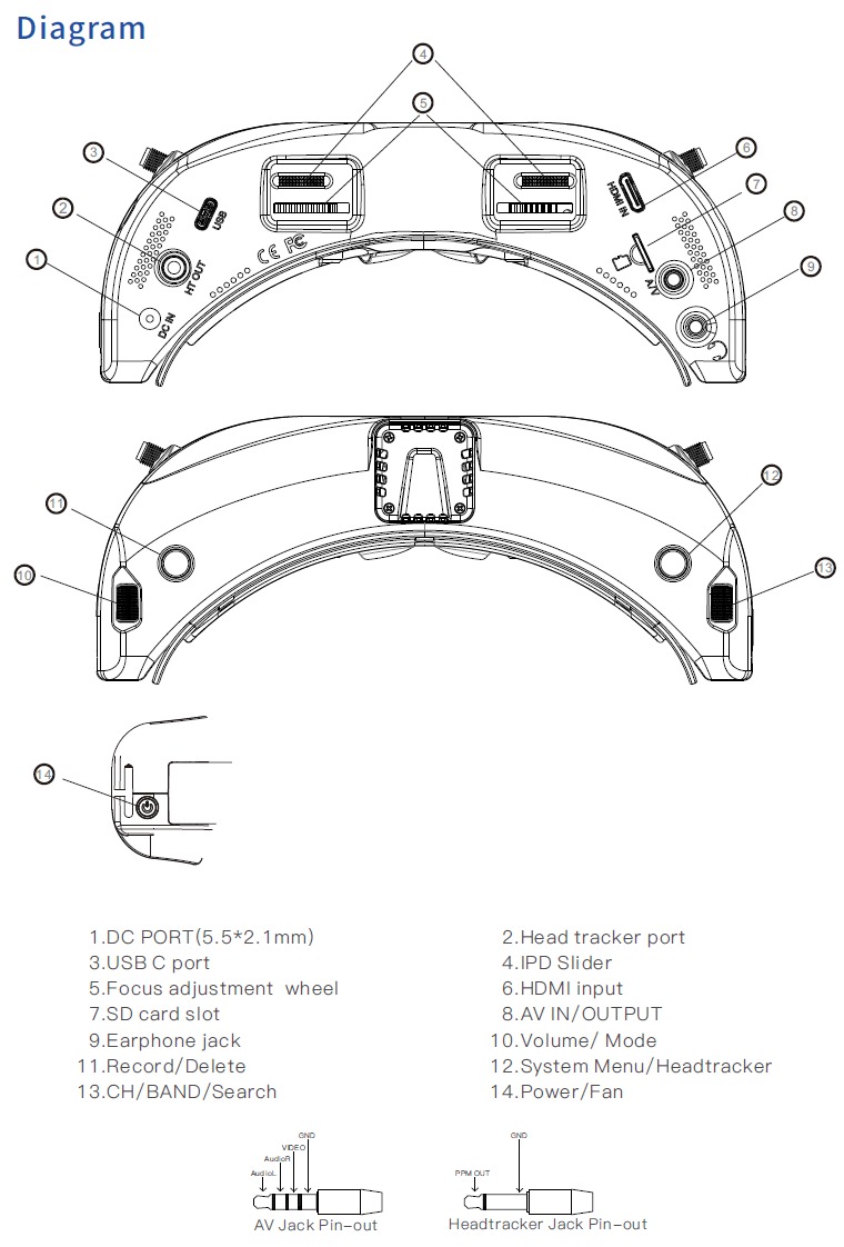 Papildomą funkcionalumą suteikia Head Tracker sistema su 3 ašių giroskopu ir akselerometru, leidžianti valdyti kameros kryptį galvos judesiais – ypač naudinga fiksuoto sparno ar long-range skrydžiams.